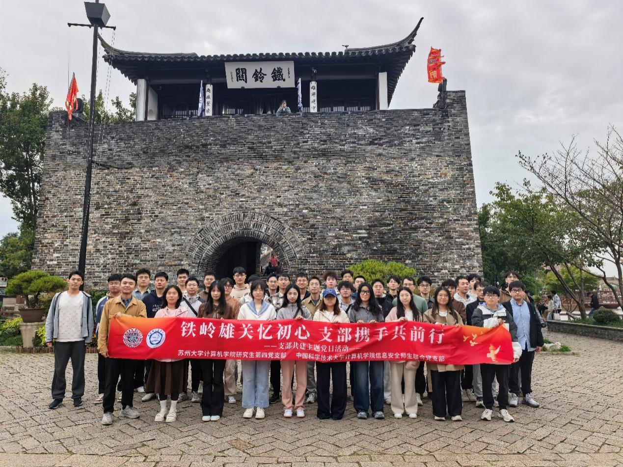 在党的百年奋斗征程中,无数革命先烈怀揣 “为有牺牲多壮志,敢教日月换新天” 的崇高信念,为实现国家独立、民族解放与人民幸福,毅然奉献生命、书写忠诚,铸就了永不磨灭的精神丰碑。1949年4月27日,中国人民解放军在铁岭关下的枫桥打响了解放苏州的第一枪。为进一步落实党史学习教育常态化要求,进一步强化支部党员及后备队伍的理想信念教育,bw必威西汉姆联betway西汉姆联研究生第四党支部联合中国科学技术大学计算机学院信息安全师生联合党支部,开展“铁岭雄关忆初心,支部携手共前行”主题党日活动,共赴中共苏州独立支部旧址、铁岭关战斗史迹陈列馆等,以实地研学、互动交流的方式,从百年党史中汲取“敢为人先、坚韧担当”的精神力量,在红色土地上书写“青春向党、科技报国”的时代答卷。